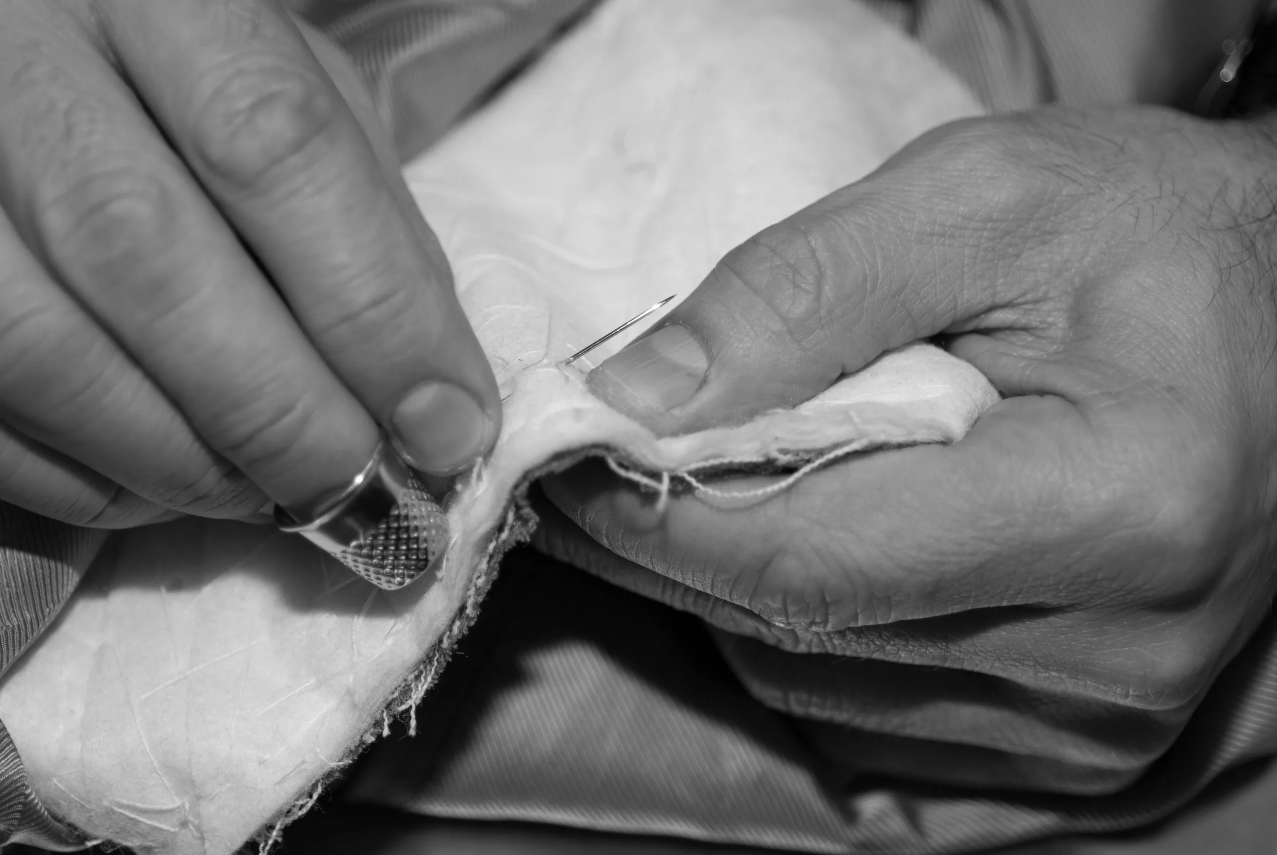 TAILORING PROCESS Once the suit's design has been decided, with the aid of chalk, the suit's lines are drawn out and then move on to the delicate cutting and stitching stage. The fabric is cut and begin the structure of Neapolitan hand-basted canvasing. The Jacket build around a full floating special canvas—components of the Jacket such as lapels, collars, and chest part of the canvas stitching meticulously in multi-direction and forming the elements to the body shape by using special stitching and ironing techniques.
