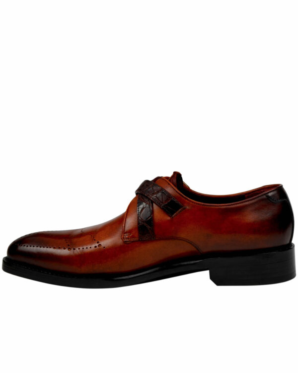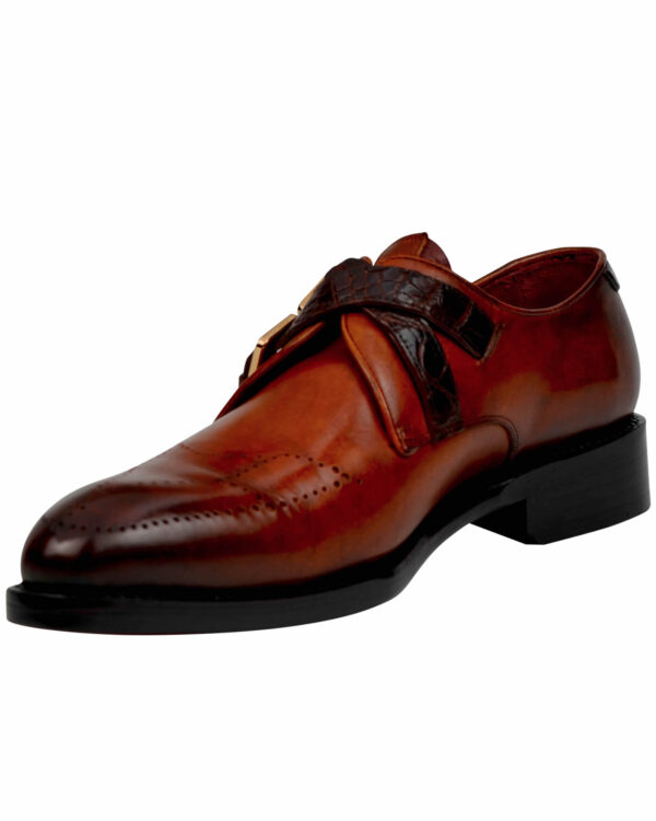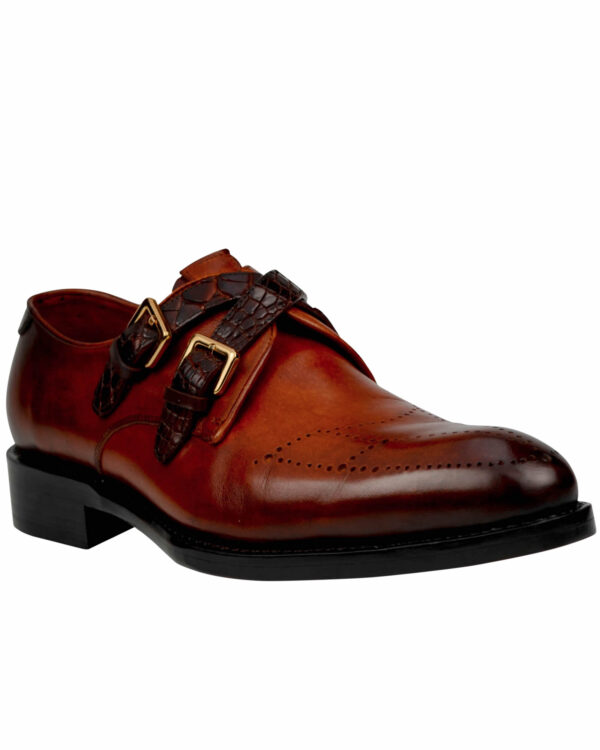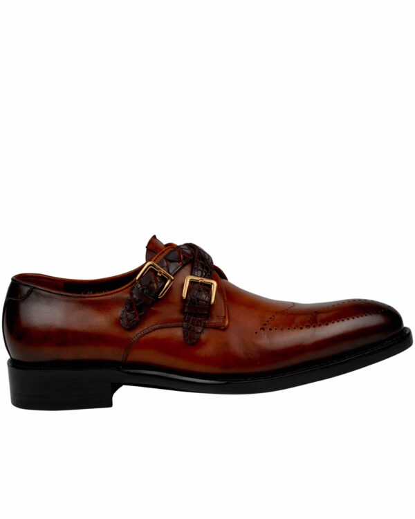 Burnished Brown Handmade Double Crocodile Straps Monk Shoes