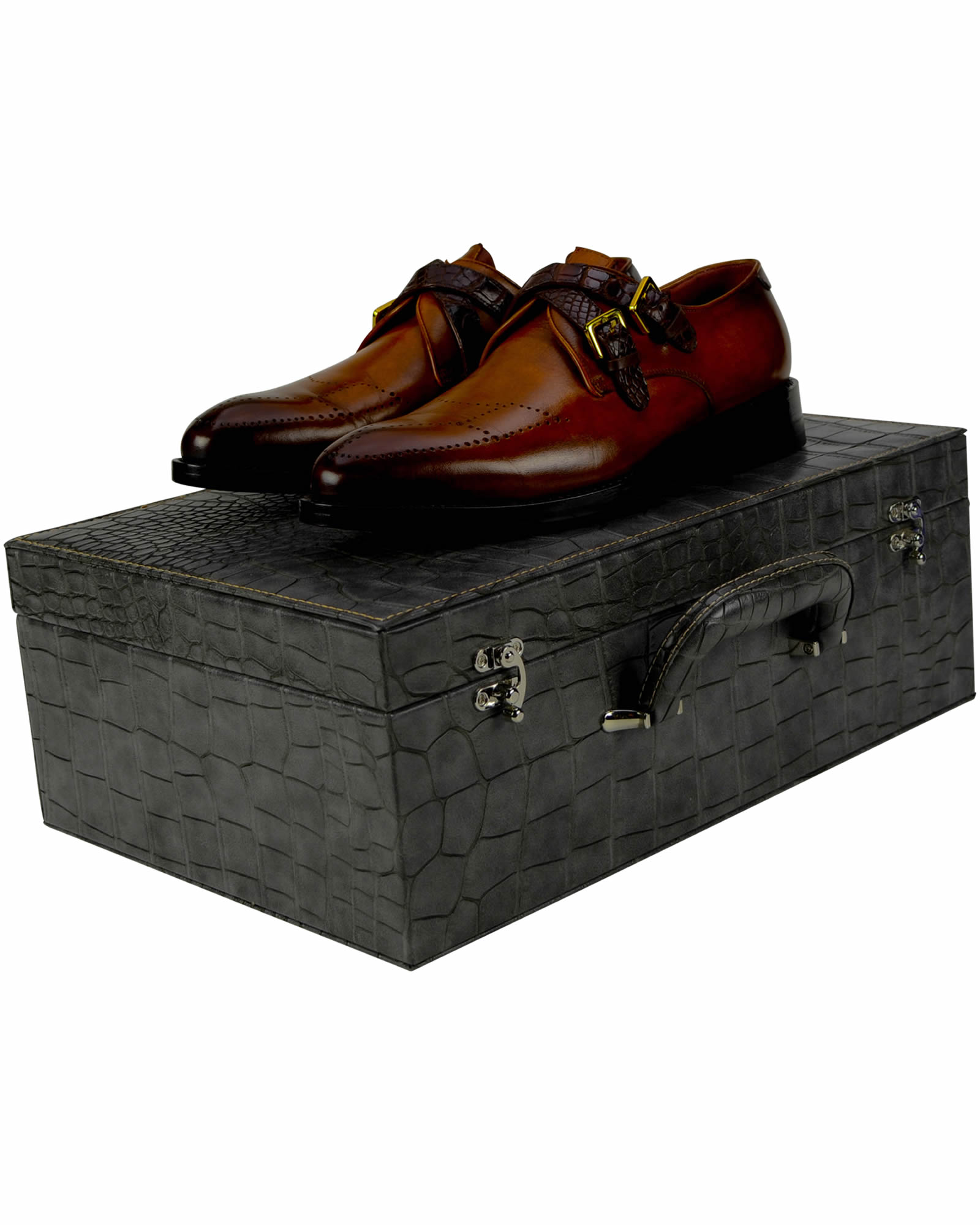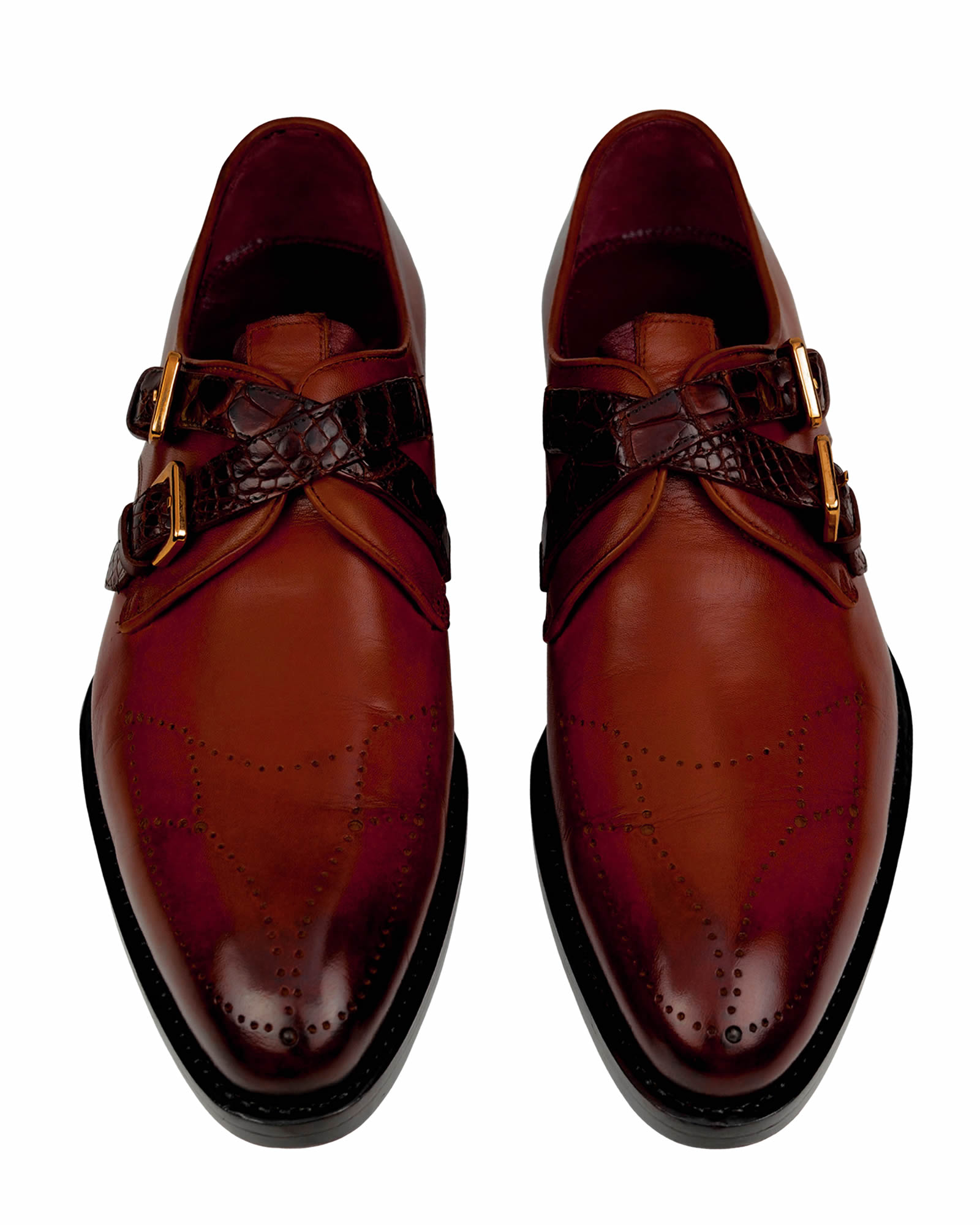 Burnished Brown Handmade Double Crocodile Straps Monk Shoes
