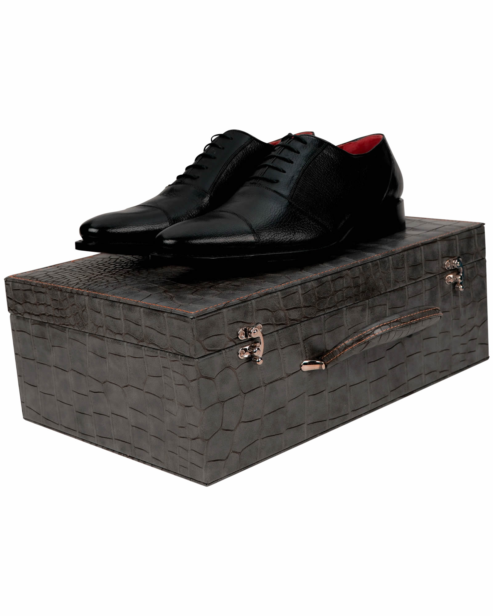 Deer skin handmade , Goodyear welted Black color shoes , Lace-up Oxford .